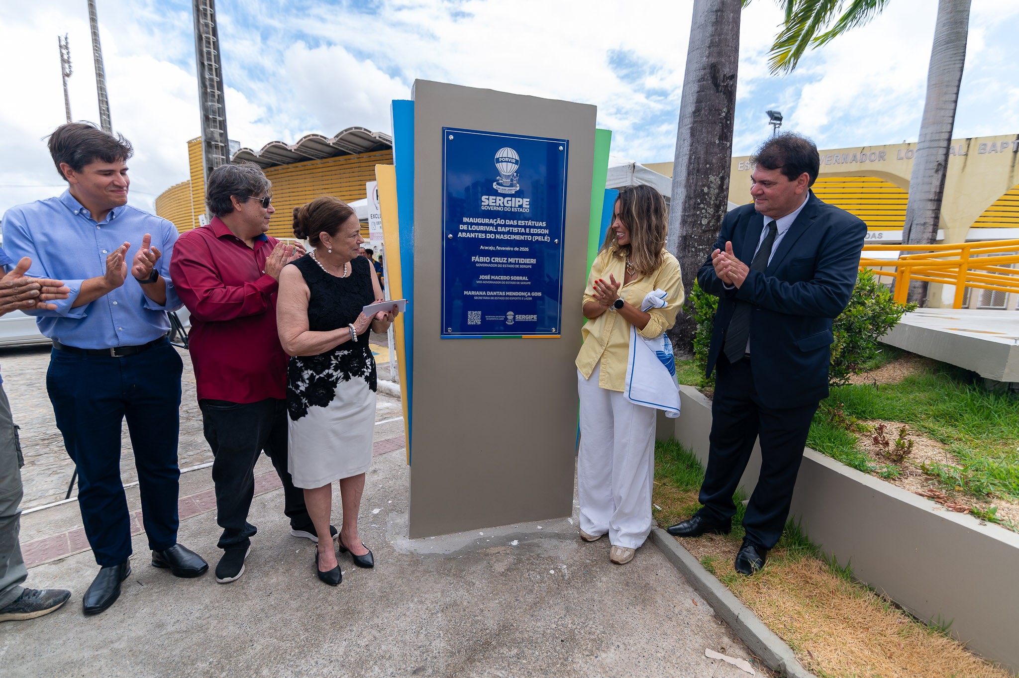 A Arena Governador Lourival Baptista, o Batistão, viveu um momento histórico com a inauguração de duas esculturas em homenagem a personagens que marcaram a trajetória do futebol em Sergipe e no Brasil: o ex-governador Lourival Baptista, idealizador do estádio, e o Rei Pelé, Edson Arantes do Nascimento, que participou da partida inaugural da praça esportiva em 9 de julho de 1969. A solenidade, promovida pelo Governo de Sergipe, por meio da Secretaria de Estado do Esporte e Lazer (Seel), reuniu, nesta quarta-feira, 11, familiares de Lourival Baptista, cronistas e radialistas esportivos, dirigentes de clubes sergipanos e representantes das entidades que organizam o futebol no estado. O evento reforçou o papel do Batistão como símbolo da identidade esportiva sergipana e patrimônio afetivo de gerações.